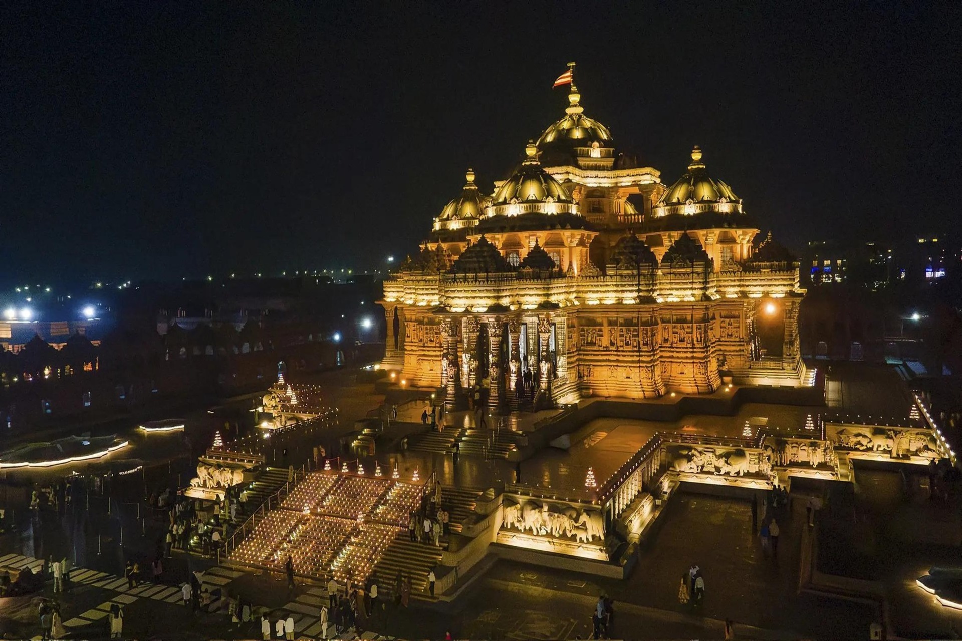 Pequeno-almoço. Visita da Velha Deli: começando pela grande mesquita de Jama Masjid, passando pelo Forte Vermelho e fazendo um passeio de riquexó pelas ruelas da Velha Deli. De seguida, visita ao templo Gurudwara Bangla Sahib da religião Sikh. Almoço. Visita dos locais mais emblemáticos de Nova Deli: a começar pelo Qutub Minar, o minarete de tijolo mais alto do mundo. Continuação para o bairro Rashtrapati Bhavan, onde se encontram todos os edifícios governamentais importantes, como o Parlamento Nacional, a Porta da Índia e o monumento da Marcha do Sal. O dia termina no Templo de Akshardham, o maior templo hindu do mundo até à data, coincidindo com o seu espetáculo de luzes. Alojamento.